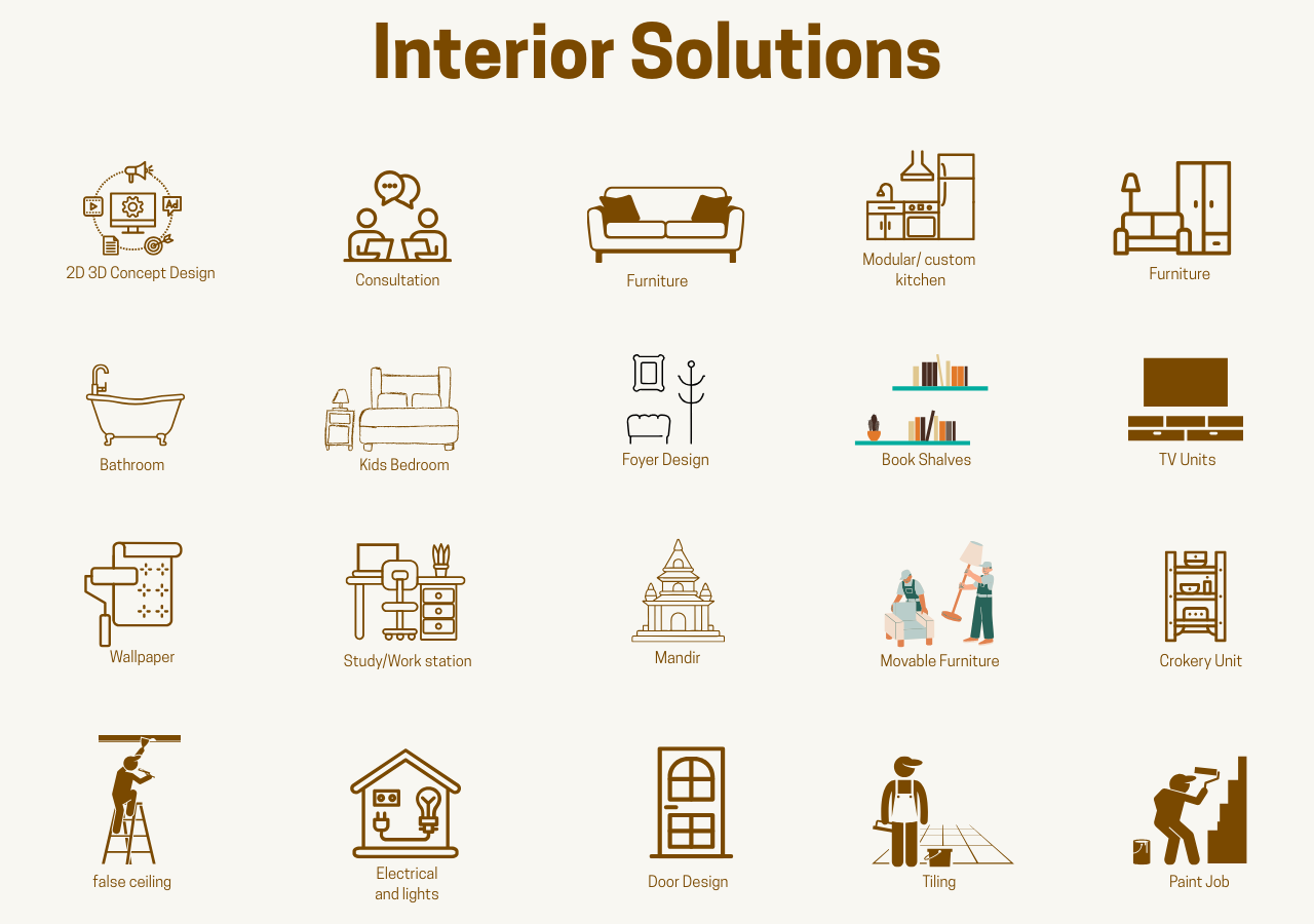 Accurate Task Execution: Every detail, including plumbing, electrical, civil work, carpentry, and false ceilings, is executed with precision. Our expertise is your space and your style. No matter how big or little, let Alorre Interiors make your vision a reality.